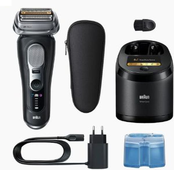 5 +1 Scherkopf-Technologie synchronisiert perfekt die Direct&Cut Klinge, den ProTrimmer, die hautschonende OptiFoil, den schützenden SkinGuard und die titanbeschichtete ProLift-Klinge, Pro-SensoAdapt Technologie analysiert die Bartdichte 300x pro Sekunde und passt die Rasierleistung automatisch an, 100 % wasserdicht, Li-ION-Akku, Akkukapazität 60 Min., Ladegerät, optimiertes 6-in-1 SmartCare Center mit AutoSelect Programm (Reinigen, Schutz der Klingenlebensdauer, Trocknen, Aufladen und Erhaltung der Rasierleistung) mit Reinigungskartusche, Reiseetui, 5 Jahre Garantie, Made in Germany