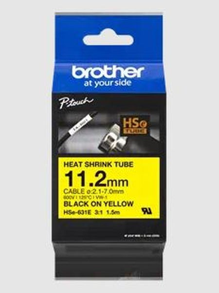 Pro Tape HSe-631E Schrumpfschlauch, Schwarz auf gelb, Beständige, perfekt lesbare Ergebnisse, Schrumpft bei Wärmeeinwirkung für eine leichte Kabelkennzeichnung, Material: Polyolefin, 11,2 mm breit, 1,5 m lang, Empf. Schrumpftemperatur: 110°C bis 140°C