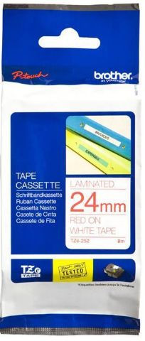 Brother TZe-252 Schriftband - rot auf weißOriginal Brother TZe-252 laminiertes Schriftband - 24 mm breit, 8 m langRot auf weißLaminiert durch patentierten Hinterbanddruck24 mm breit, 8 m langWisch-, wetter- und kratzfestTemperatur-, chemie- und UV-beständigBeständige, perfekt lesbare Ergebnisse