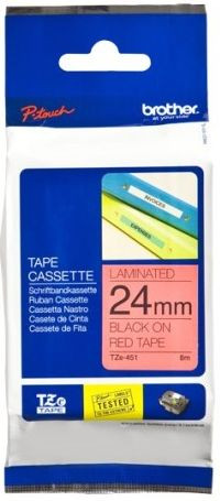 Brother TZe-451 Schriftband - schwarz auf rotOriginal Brother TZe-451 laminiertes Schriftband - 24 mm breit, 8 m langSchwarz auf rotLaminiert durch patentierten Hinterbanddruck24 mm breit, 8 m langWisch-, wetter- und kratzfestTemperatur-, chemie- und UV-beständigBeständige, perfekt lesbare Ergebnisse