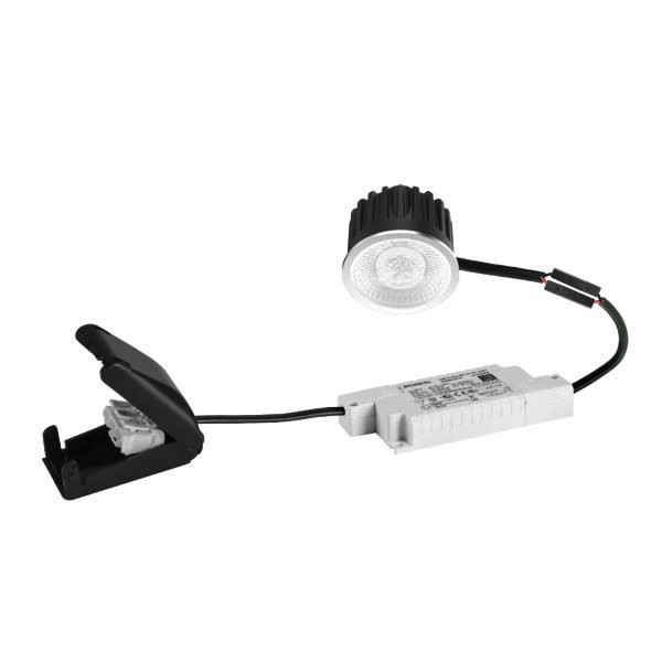 Set bestehend aus LED-Einsatz 3CCT, CRI>80 und Konverter, Phasenabschnitt dimmbar, mit Anschlussbox, schwarz / aluminium matt. Set inkl. Konverter für 230 V-Netzspannung, Phasenabschnitt dimmbar, Maße Konverter: L 110 x B 50 x H 19 mm Ausführung: Plug&Play, Material: Aluminium / PMMA / Kunststoff, Schutzart raumseitig: nach DIN EN 60529: IP20, Schutzklasse: (EN 61140) II, Leistung: 7,5 W, Anzahl der Leuchtmittel / Fassungen: 1 Stück, Lichtstrom: 925 lm, Farbtemperatur: von 2.700 K bis 4.000 K, Abstrahlwinkel: 50°, Mit Betriebsgerät: Ja, Dimmbar: Ja, Art der Dimmung: Phasenabschnitt.