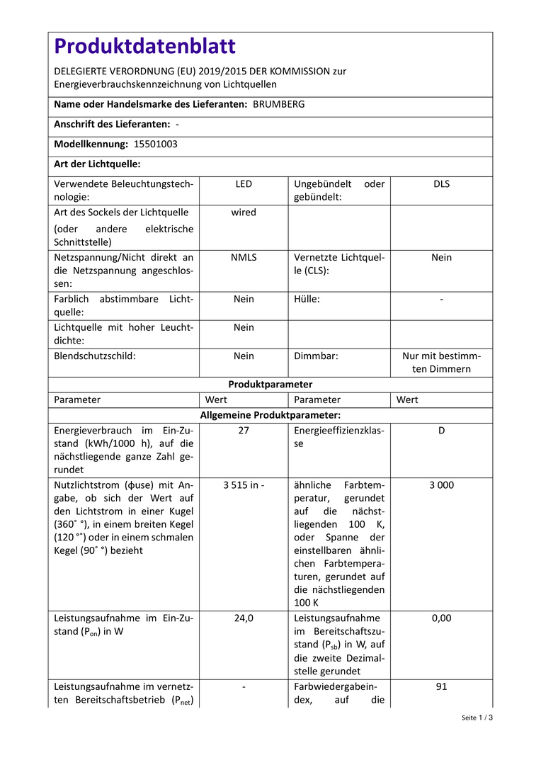 | Energieeffizienzklasse der Lichtquelle nach EU-Richtlinie 2019/2015 | D |