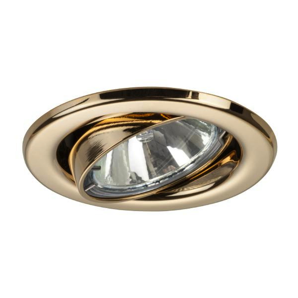 Einbaustrahler, MR16, gold glänzend, rund. Ausgeführt in kompakter Bauform für werkzeuglose Schnellmontage zum Deckeneinbau. Ausführung: GX5,3, Montageart: Einbaumontage, Montageort: Deckenmontage, Material: Stahl / Messing, Schutzart raumseitig: nach DIN EN 60529: IP20, Schutzklasse: (EN 61140) III, Spannung: 12 V, Leistung: 13 W, Anzahl der Leuchtmittel / Fassungen: 1 Stück, Verstellbarkeit: schwenkbar, ohne Betriebsgerät, Dimmbar: Abhängig vom Betriebsgerät, Art der Dimmung: Abhängig vom Betriebsgerät.