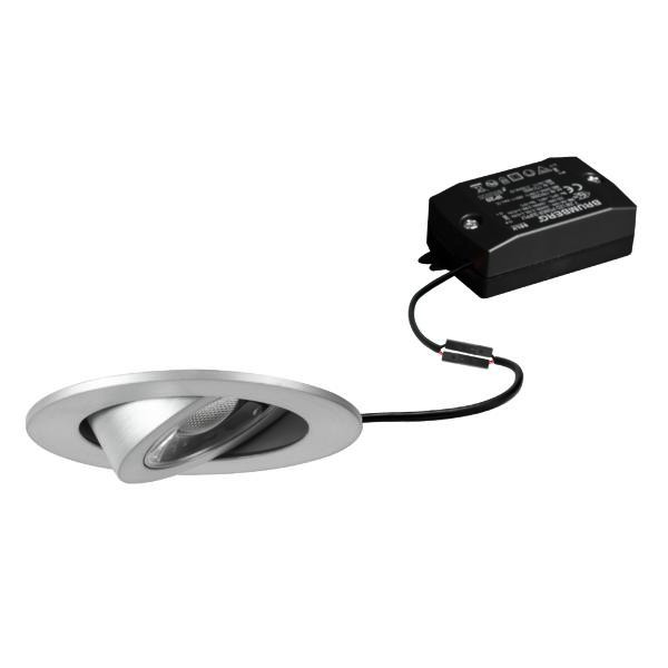 LED-Einbaustrahlerset, mit Linsenoptik, schaltbar, alu matt, rund. Ausgeführt in kompakter Bauform für werkzeuglose Schnellmontage zum Deckeneinbau. Set inkl. Konverter für 230 V-Netzspannung, schaltbar, Maße Konverter: L 68 x B 35 x H 21 mm Ausführung: ohne Fassung, Montageart: Einbaumontage, Montageort: Deckenmontage, Schutzart raumseitig: nach DIN EN 60529: IP20, Schutzklasse: (EN 61140) II, Spannung: 230V AC 50Hz, Leistung: 6 W, Anzahl der Leuchtmittel / Fassungen: 1 Stück, Lichtstrom: 810 lm, Farbtemperatur: 4.000 K, Abstrahlwinkel: 38°, Verstellbarkeit: schwenkbar, Mit Betriebsgerät: Ja, Dimmbar: Nein, Art der Dimmung: schaltbar.