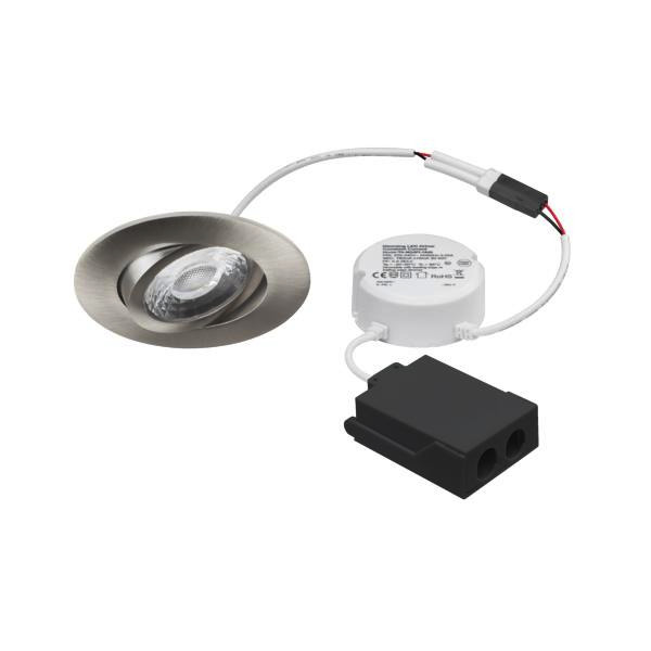 | Kurzbeschreibung | LED-Einbaustrahler 230 V AC, 50 Hz, 8 W, 36°, 3.000 K, rund, schwenkbar, nickel |