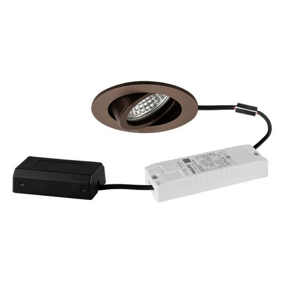 LED-Einbaustrahlerset, DALI dimmbar, mit Anschlussbox, braunmetallic matt, rund. Ausgeführt in kompakter Bauform für werkzeuglose Schnellmontage zum Deckeneinbau. Montageart: Einbaumontage, Montageort: Deckenmontage, Material: Aluminium / Glas / Kunststoff, Schutzart raumseitig: nach DIN EN 60529: IP20, Schutzklasse: (EN 61140) II, Spannung: 230V AC 50Hz, Leistung: 6 W, Anzahl der Leuchtmittel / Fassungen: 1 Stück, Lichtstrom: 730 lm, Farbtemperatur: 3.000 K, Lichtfarbe: weiß, Abstrahlwinkel: 38°, Verstellbarkeit: schwenkbar, Mit Betriebsgerät: Ja, Dimmbar: Ja, Art der Dimmung: DALI-2.