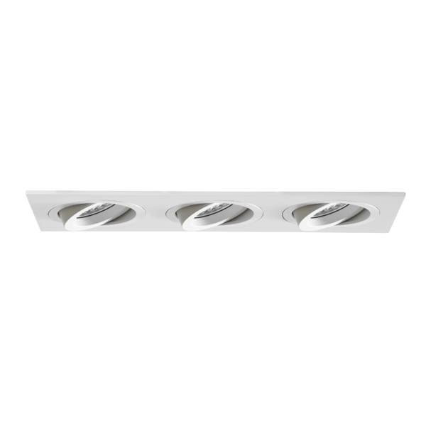 Einbaugehäuse, rechteckig, bündig, 3-fach, mit Modulhalterungen bündig, schwenkbar, ohne LED-Module, weiß struktur, quadratisch. Ausgeführt in kompakter Bauform für werkzeuglose Schnellmontage zum Deckeneinbau. Ausführung: ohne Fassung, Montageart: Einbaumontage, Montageort: Deckenmontage, Material: Aluminium, Schutzart raumseitig: nach DIN EN 60529: IP20, Schutzklasse: (EN 61140) III, Leistung: 13 W, Anzahl der Leuchtmittel / Fassungen: 3 Stück, Verstellbarkeit: schwenkbar, ohne Betriebsgerät, Dimmbar: Abhängig vom Betriebsgerät, Art der Dimmung: Abhängig vom Betriebsgerät.