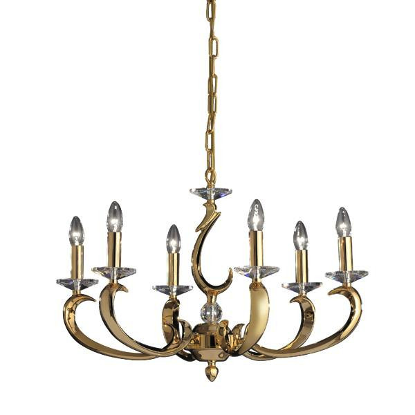 | Kurzbeschreibung | Pendelleuchte, gold glänzend, E14, 6x40 W max., inkl. Kette 700 mm und Baldachi |
