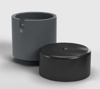 Aufsatzrohr aus massivem PVC und Schutzkappe aus Weich-PVC zum Schutz vor Regen im gesteckten Zustand.