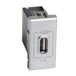 USB-Ladesteckdose 1-fach für das Schalterprogramm Axolute mit Ausgangsspannung 5 VDC mit max. Ladestrom von 1100 mA für Mobiltelefone, Smartphones, Tablets, usw. – Spannungsversorgung 230 VAC – 1 Modul, Farbe: Aluminium