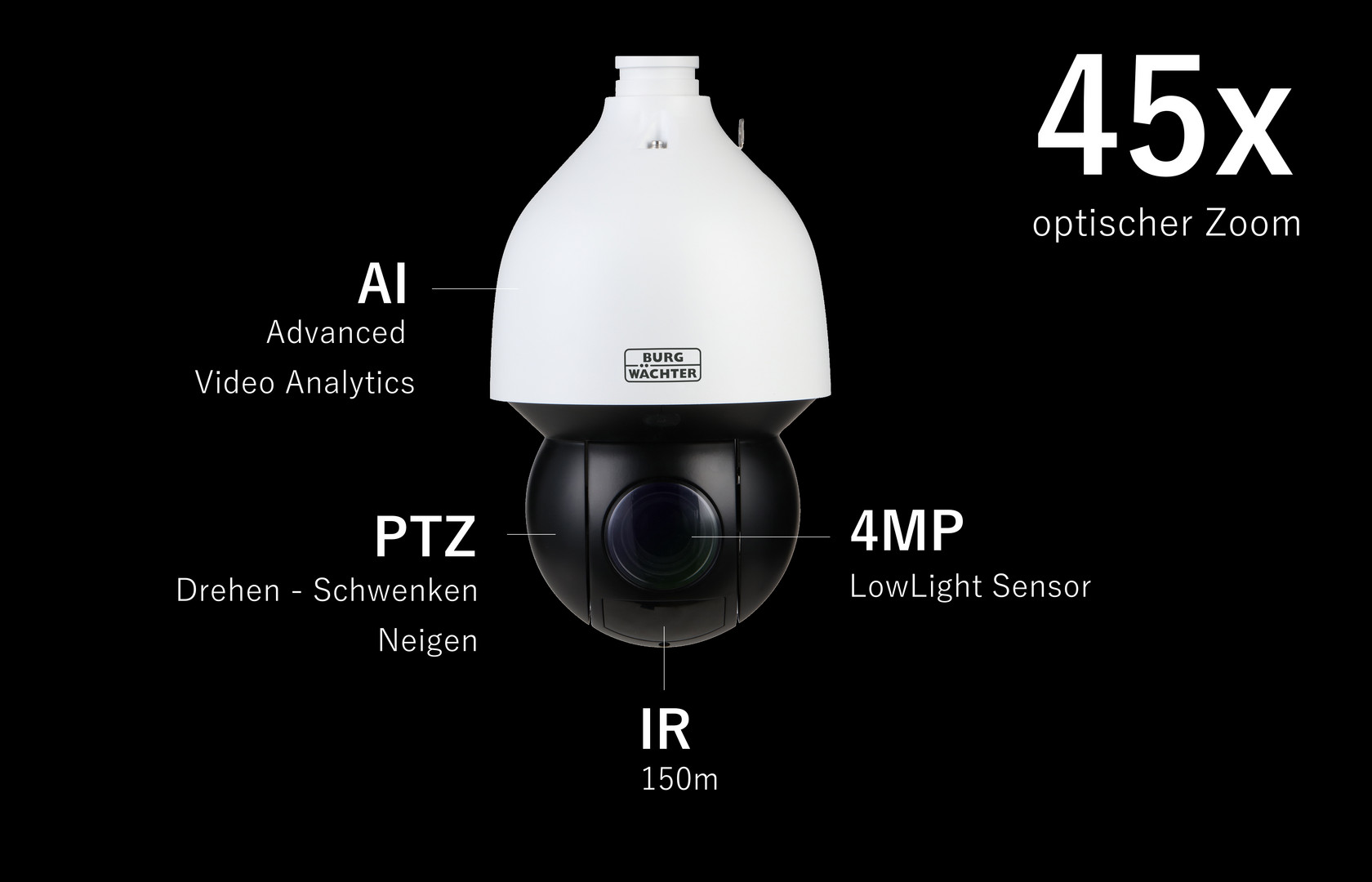 BURG-GUARD BWNC-442DSIA-G2 IP-IR-Speed Dome, 4MP Fu