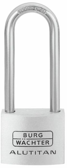 Mit hohem Bügel• Massiver Aluminiumkörper• Bügel doppelt verriegelt (ab Größe 30 mm)und stahlhart• Innenwerk rostfrei