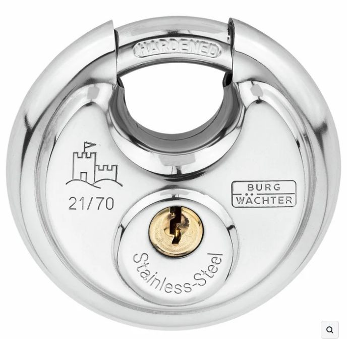 Schlosskorpus aus rostfreiem Edelstahl• Bügel gehärtet und verchromt