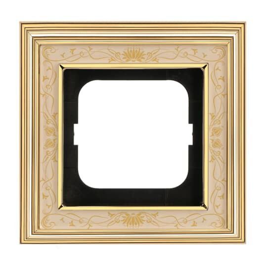 | Kurzbeschreibung | Abdeckrahmen 1-fach Messing poliert Dekor elfenbeinweiß - Busch-dynasty® |