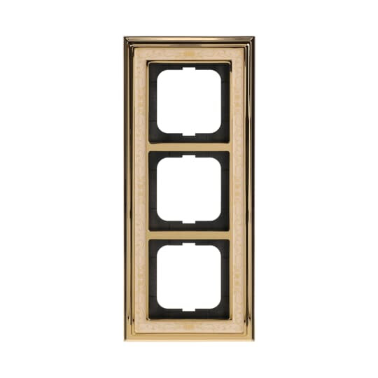 | Kurzbeschreibung | Abdeckrahmen 3-fach Messing poliert Dekor elfenbeinweiß - Busch-dynasty® |