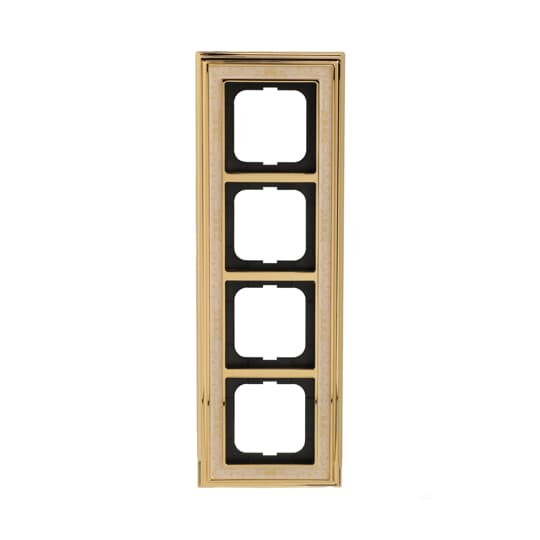 | Kurzbeschreibung | Abdeckrahmen 4-fach Messing poliert Dekor elfenbeinweiß - Busch-dynasty® |