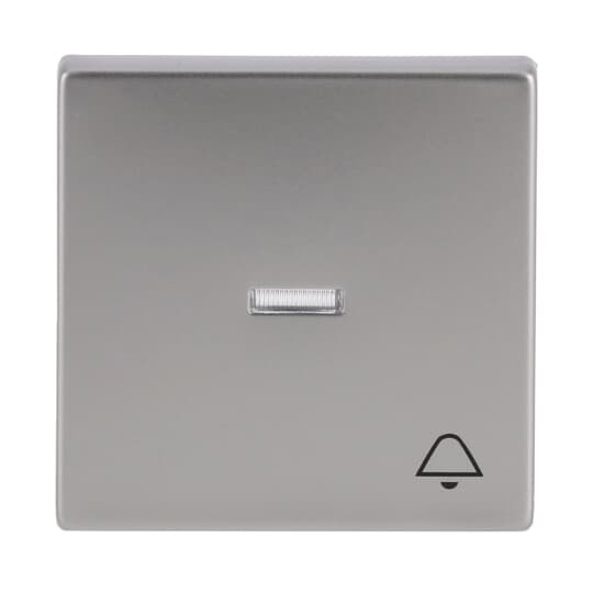 Wippe mit Aufdruck mit kleiner transparenter Kalotte mit Symbol >Klingel< pur edelstahl.