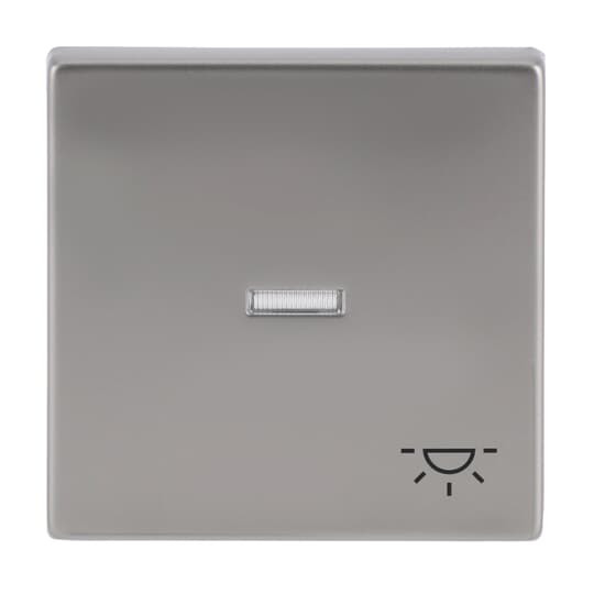 Wippe mit Aufdruck mit kleiner transparenter Kalotte mit Symbol >Licht< pur edelstahl.