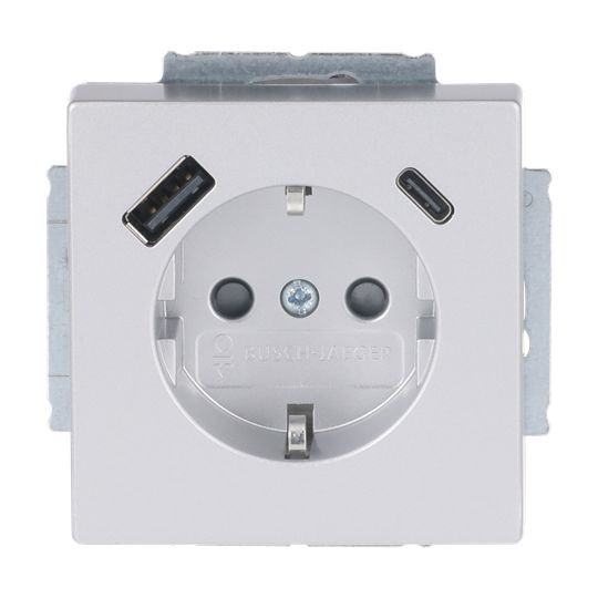 | Kurzbeschreibung | SCHUKO® USB-Steckdosen-Einsatz Safety+ mit USB A/C alusilber - Plattform 63 |