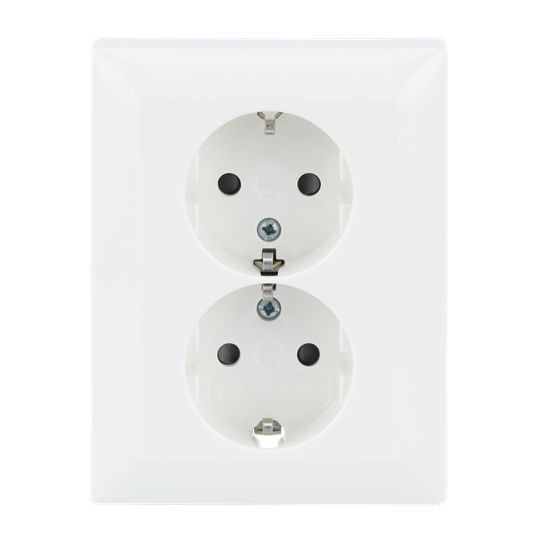 | Kurzbeschreibung | SCHUKO® Doppelsteckdose Komplettabdeckung Safety+ alpinweiß - Busch-balance® SI |