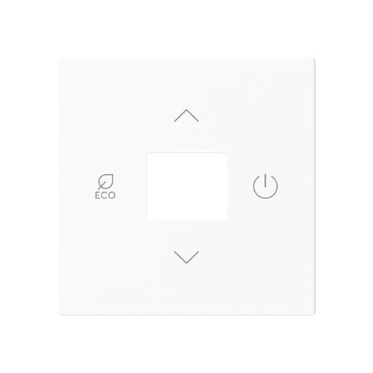 Als Abdeckung für Busch-free@home® Raumtemperaturregler (6224/2.0, 6224/2.0-WL, 6224/2.1-WL).