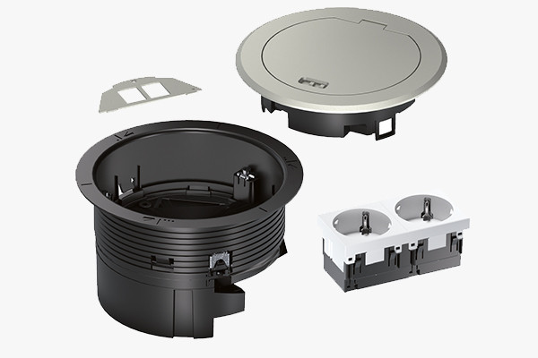 Die neuen Bodendosen sind modular aufgebaut: Sie bestehen aus Installationsdose, Geräteaufnahme und Deckelvariante. Alle Komponenten sind perfekt aufeinander abgestimmt. Das praktische Einbauzubehör sorgt für einfache und schnelle Montage auf jedem Untergrund.