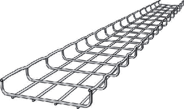Schwerlastgitterrinne Typ CF30/50 EZ /m Kabeltraegersystem aus Stahldraht, elektrolytisch verzinkt nach DIN 50961, ohne Trennsteg, Seitenhoehe in mm: 30, Nennbreite: 50, Maschengroesse in mm: 50 x 100, Standard-Lieferlaenge in mm: 3000.
