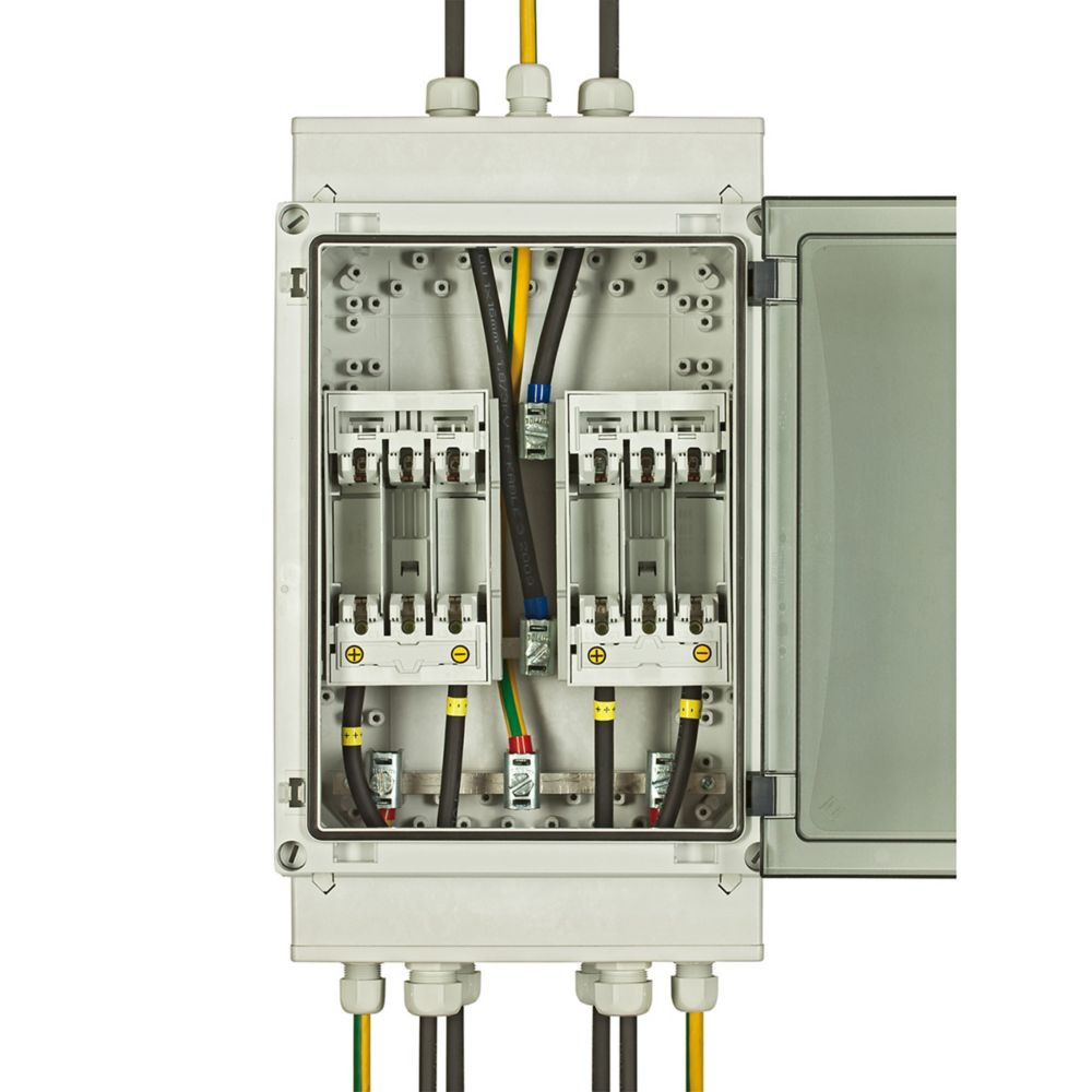 Eaton ZB-S Zentralbatteriesystem, Anschlussverteiler Batterie für Sammelschienenmontage inklusive 2 Stk. Schraubkappen E18 und 2 Stk. D02-Sicherungseinsätze 25 A