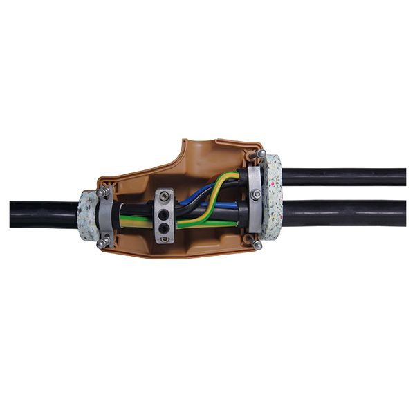 Universell verwendbar zum Abzweigen von Kabeln mit Isolierungen aus PVC, PE, VPE und Papier (z. B. N(A)YY, N(A)KBA, GN-CLN, TT) ohne und mit konzentrischem Leiter sowie papierisolierten Kabeln. Mit hydrolysebeständigem PUR-Gießharz EG. Geeignet für Kabelabzweigklemmen auf Kupfer- und Aluminiumleiter.