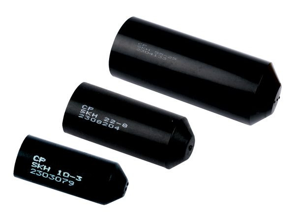 Warmschrumpf-Endkappen SKH mit Kleber, als Druck- und Feuchtigkeitsschutz für Kabel, Leitungen und Rohre von 5 - 105 mm Durchmesser.