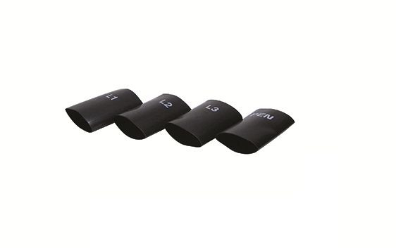 Universell verwendbar zum Kennzeichnen von Kunststoffkabeln im Anschlussbereich. Schwarze Schrumpfschläuche mit weißem Aufdruck, 1 Set = je 1 Stück L1, L2, L3, PEN.