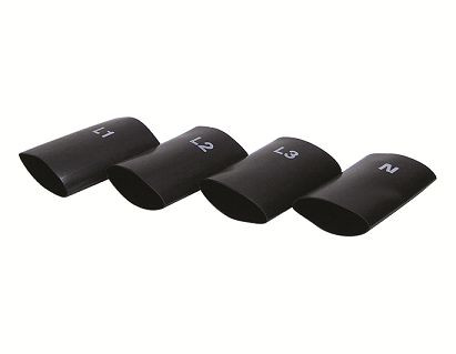 Universell verwendbar zum Kennzeichnen von Kunststoffkabeln im Anschlussbereich. Schwarze Schrumpfschläuche mit weißem Aufdruck, 1 Set = je 1 Stück L1, L2, L3, N.