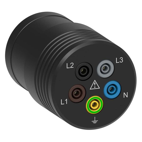 Adapter für Prüfungen an CEE-Steckdosen. Ausgerüstet mit 4 mm Sicherheitsbuchsen (PE, N, L1, L2, L3). CAT IV 600 V. Für Prüfungen des Isolationswiderstands und der Phasenfolge der Außenleiter an CEE-Steckdosen mit Installationstestern C.A 6113 / C.A 6116N / C.A 6117.