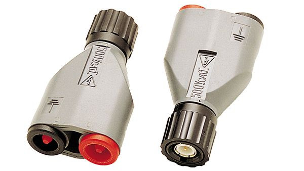 BNC-Stecker - Sicherheitsstecker rot / schwarz. Ø 4 mm isoliert (19 mm Abstand). 500 V CAT I, 150 V CAT III.