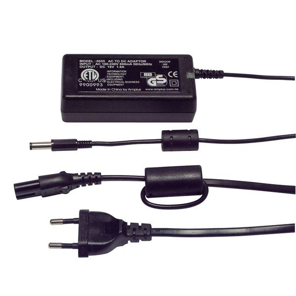 Ersatz-Netz- und Akku-Ladegerät mit 2-poligem Netzkabel für Erdungs- und Erdwiderstandsmesser C.A 6470N / C.A 6471 / C.A 6472. Eingang: AC 100-240 V 800 mA 50/60 Hz. Ausgang: DC 18 V 1,9 A.