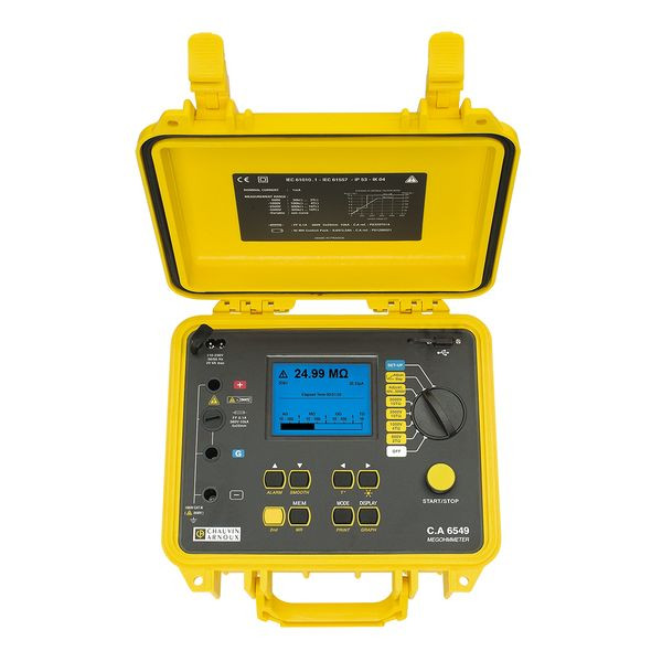 Das Megohmmeter CA 6549 im baustellentauglichen Gehäuse bietet eine quantitative und qualitative Analyse der Isolation auf großer beleuchteter Grafik-Anzeige.