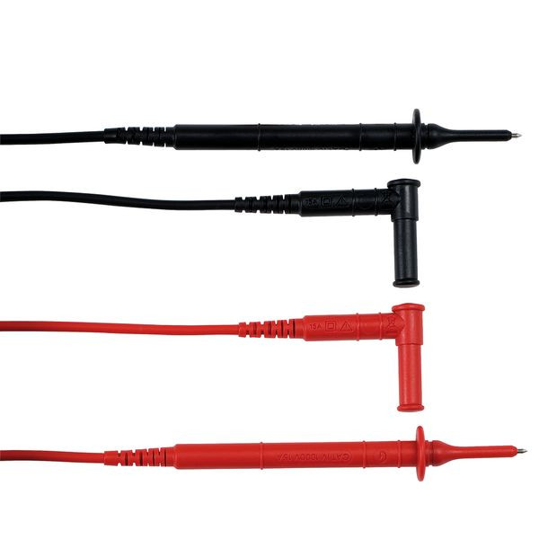 | Kurzbeschreibung | Messleitungen mit Prüfspitze - 4mm Winkelstecker-1,5m-15A-CATIV-1000V-PVC-rot+sw |
