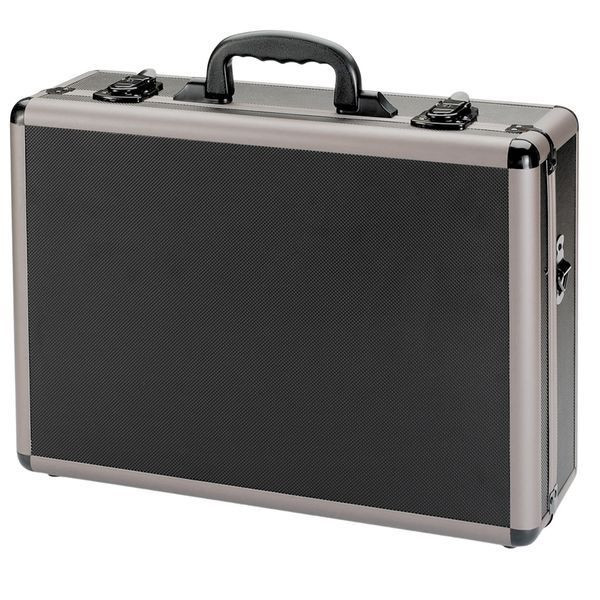 Hochwertiger, robuster Transportkoffer (schwarz) für den universellen Einsatz. Abmessungen: 440 x 310 x 135 mm. Beinhaltet Schaumstoff zum Ausschneiden, Tragegurt und Schlüssel.