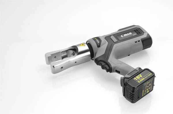 CimPress 400H; Presskopf in H-Form, 270° drehbar, austauschbare Presseinsätze, 2-Stufen-Hydraulik für High-Speed-Vorschub, manueller Rücklauf nach vollendeter Pressung: Presskraft: 130kN; Hub/Öffnungsweite: 34 mm; Pressbereich: 10-400 mm²; Verpresszeit (querschnittsabhängig): 8-9s; Service-Zyklus: 20.000 Bestätigungen; Arbeitsbereich: -10°C bis +60°C; Akkuspannung: 18 V; Akkukapazität: 5.0 Ah Li-Ion; Akkuladezeit: 60 Min., Maße: 410x335x86; 6.400 g