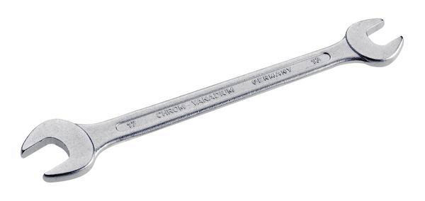 Doppelmaulschlüssel einzeln nach DIN 3110/ ISO 3318. Maulstellung 15°, aus Chrom-Vanadium-Stahl, glanzverchromt, SW 6 x 7 mm.