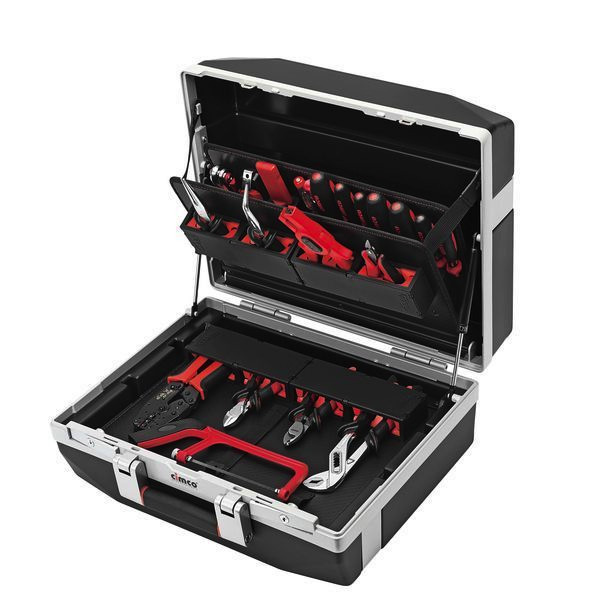 Belastbarkeit bis zu 30 kg, Kofferschalen mit einem zusätzlichen Aluminiumrahmen für erhöhte Stabilität ausgestattet, zwei herausnehmbare Werkzeugtafeln mit gummierten Werkzeug-Einschublaschen- und Einschublamellen und einem Dokumentenfach. Zusätzliche Werkzeugtafel mit integrierten Werkzeug-Einschublamellen in der Bodenplatte. Lieferung inkl. 5 Einsatzfach Carry-Lite 55 zur sicheren Aufbewahrung von Kleinteilen und Zubehör. Revolutionäre Stabilität: Kofferschalen aus 3,5 mm ABS (flugtauglich), verstärkter Aluminiumrahmen (Einzelrahmen), Scharniere für Kofferschalen im Rahmen integriert, großer Aluminiumgriff mit Kunststoffeinlage, zwei im Rahmen versenkte Zylinderschlösser, besonderes hohe und robuste Füße für maximale Standsicherheit. Revolutionärer Komfort: Zwei Gasdruckstoßdämpfer für komfortables Öffnen des Koffers, Werkzeugtafeln in der Kofferoberschale mit 30 Grad Neigung zur besseren Werkzeugentnahme, Profilraster im Kofferboden für Einsatzfach Carry-Lite 55, Werkzeugtafeln mit neuartiger Durchschub-Begrenzung. Aus recycelbaren Materialien hergestellt, Design und Entwicklung auf Reparaturfreundlichkeit ausgerichtet, komplett mit 21 Werkzeugen. Werkzeugkoffer-Bestückung: 1 x Telefonzange, gerade (10 0216), 1 x Telefonzange, gebogen (10 0238), 1 x Seitenschneider 160 mm (10 0574), 1 x Abisolierzange Super 4 (10 0760), 1 x Elektronik-Seitenschneider (10 1040), 1 x Wasserpumpenzange (10 1224), 1 x Presszangensystem clickncrimp Elektrotechnik (10 6000), 1 x Stiftschlüssel-Satz (11 0596), 1 x Phasenprüfer (11 1280), 1 x Präzisions-Schlitz-Schraubendreher (11 1864), 1 x Schlitz-Schraubendreher mit 1000 V-Schutzisolation 3,0 x 0,5 (11 7702), 1 x Schlitz-Schraubendreher mit 1000 V-Schutzisolation 4,0 x 0,8 (11 7704), 1 x Schlitz-Schraubendreher mit 1000 V-Schutzisolation 5,5 x 1,0 (11 7705), 1 x Kreuzschlitz-Schraubendreher mit 1000 V-Schutzisolation PH 1 (11 7731), 1 x Kreuzschlitz-Schraubendreher mit 1000 V-Schutzisolation PH 2 (11 7732), 1 x Kreuzschlitz-Schraubendreher mit 1000 V-Schutzisolation PZ1 (11 7741), 1 x Kreuzschlitz-Schraubendreher mit 1000 V-Schutzisolation PZ 2 (11 7742), 1 x Kabelschere Duocut ( 12 0108), 1 x Taschensäge Profi (12 0490), 1 x 1000 V Sicherheitskabelmesser (12 1042), 1 x Kabelmesser System 4 -70 (12 2016)