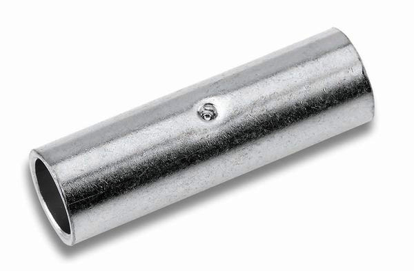 Stoßverbinder Cu, Normalausführung. Technische Daten - Werkstoff: Cu-ETP nach DIN EN 13600 - Oberfläche: galvanisch verzinnt, andere Oberflächen auf Anfrage - auch geeignet für feindrähtige Leiter nach IEC 228 - Ausgeglüht auf Kupferhärte F 20. Querschnitt: 150 mm²; Øi: 16,5; Øe: 21; L: 72; Gewicht per 100St. ~kg: 9; 7 mm: 2-2; Pressung 5 mm: 4-4; VE/Stck.: 1.