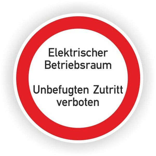 Verbotszeichen "Elektrischer Betriebsraum! Unbefugten Zutritt verboten" Material: selbstklebende Folie. Format: d = 200 mm