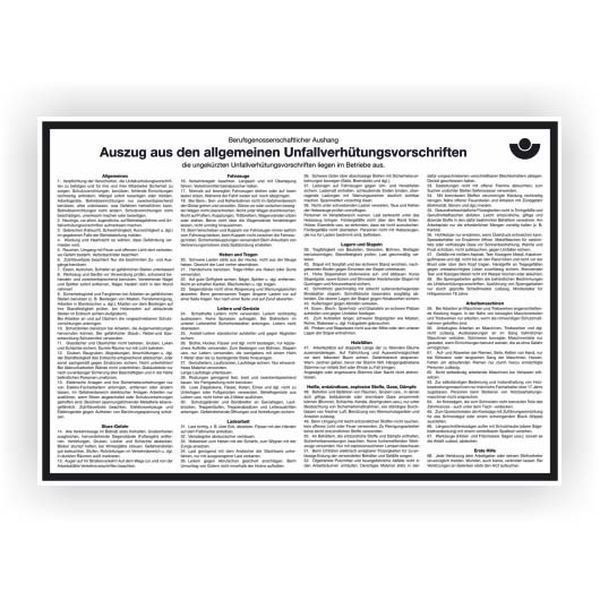 Sicherheitsaushänge "Auszug aus den allgemeinen Unfallverhütungsvorschriften". Material: Kunststoff. Format: 420x297 mm