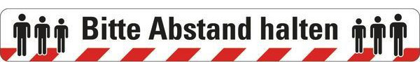 Bodenmarkierung, "Bitte Abstand halten", schnell aufzubringen, sofort befahrbar, leicht zu reinigen, für glatte Untergründe im Innenbereich, Verlegung nur auf trockenen, sauberen, staub- und fettfreien Untergründen, sehr gute chemische Beständigkeit gegenüber Reinigungsmitteln, schmutzabweisend, sehr dünn, keine Schmutzrandbildung, rückstandslos entfernbar.Temperaturbeständigkeit: -40°C bis +150°C, Material: Polyester, selbstklebend, Stärke: 0,2 mm. Größe: 75x600 mm.
