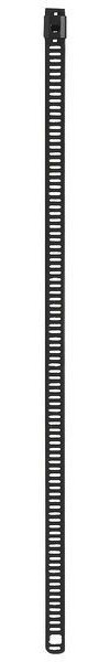 Kabelbinder aus Edelstahl in Leiterform, BxL 7,0x450 mm, max. Kabelbaum-ø 140 mm, Mindestzugfestigkeit 445N, mit sicherem Verschluss über Lochraster. Korrosions- und strahlenbeständig, antimagnetisch, UV-stabilisiert und halogenfrei. Äußerst beständig gegen aggressive Chemikalien. Stahldicke 0,30 mm (breite 7 mm) bzw. 0,35 mm (breite 12 mm). Temperaturbeständigkeit -80°C bis +538/150°C. farbe schwarz, beschichtet. Zertifizierung: UL, DNV, LR.