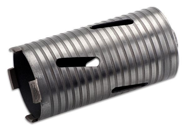 Diamant-Bohrkronen Allround mit einer Arbeitslänge von 150 mm. Mit mit aufgelaserten Diamantsegmenten aus Diamantkorn-Bindung, geeignet für: Betonerzeugnisse (mittelhart), Waschbeton, Bordstein, Pflaster, Verbundstein, Dachziegel (mittelhart), Hohlblockstein, Mauerstein, Ziegel (weich/hart), Kalksandstein (weich abrasiv/hart/hochverdichtet), Quadroblock, Sandstein (hart), Klinker (mittelhart), Putz, Gasbeton und Estrich. Ausführung: 7 mm Höhe; Segment Länge: 24 mm; Anzahl: 5; Ø: 112 mm; VE: 1