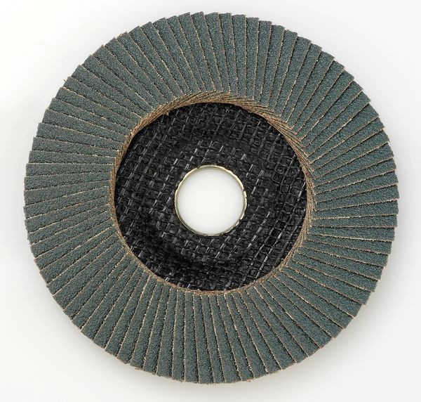 Zirkorn-Korund-Fächerscheibe für Trockenschliff, speziell für die Flächenbearbeitung, hartes und zähes Schleifkorn ermöglicht eine sehr gute Materialabtragung, geeignet für: Stahl (rostfrei), gehärteten Stahl, zähes Buntmetall und Stahlguss. Stärke 60 Korn mm; Ausführung gekröpft; Ø: 125 mm