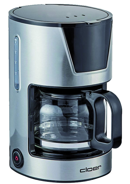 herausnehmbarer Filtereinsatz, Tropf-Stopp-Funktion, außen liegende Wasserstandsanzeige, Ein-/Ausschalter mit Kontrolllampe, automatische Abschaltung nach 40 min., Edelstahlgehäuse mit schwarzer Kunststoffblende