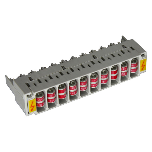 | Kurzbeschreibung | Magazin 2/10, 8x10, mit 10 3-Pol-Ableitern, mit Stiften, 90V, 10kA |